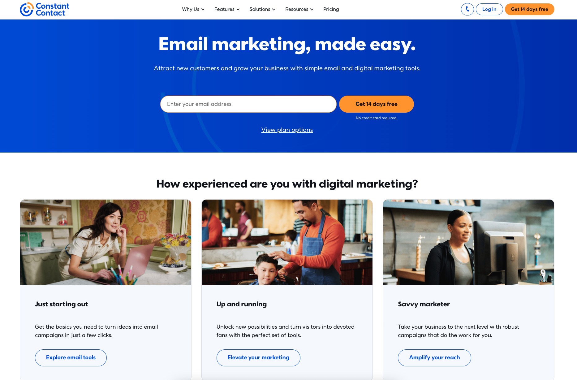 Constant Contact es una de las plataformas más veteranas en el mundo del email marketing. Aunque no es tan popular en el mercado hispanohablante, sigue siendo una opción sólida gracias a su facilidad de uso y su enfoque en pequeñas empresas.