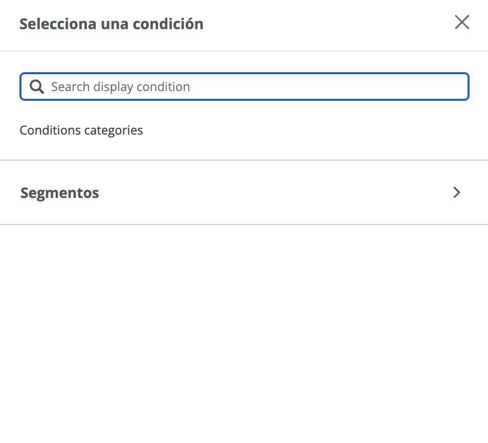 - Solo puedes añadir condiciones cuando estás creando una campaña (en el paso 4: Diseño), ya que necesitas tener una lista asociada para acceder a sus campos y segmentos.