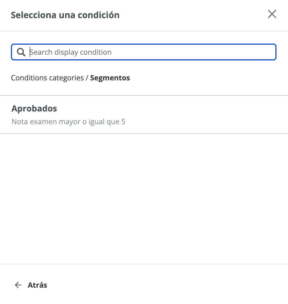 4. Para usar un segmento existente de tu lista haz clic en “Selecciona una condición”. Haz clic en segmentos y elige el segmento que quieras usar.