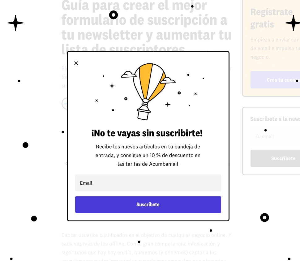 Un popup que se activa cuando el usuario lleva 30 segundos en la página convierte mucho mejor que uno que aparece nada más entrar.