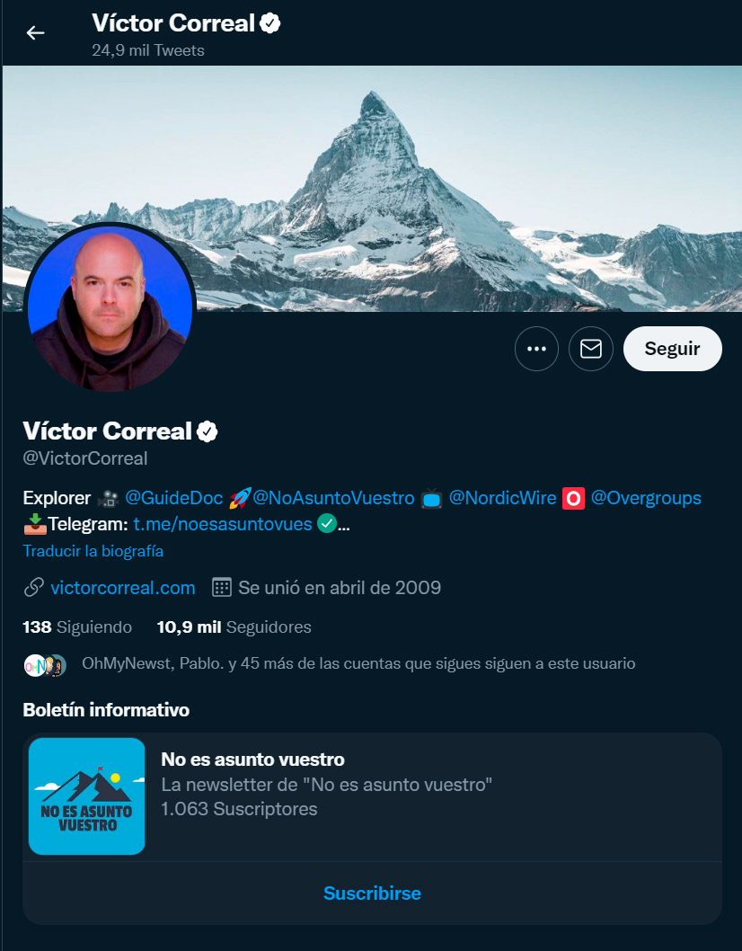 Pero, desde hace algún tiempo, en Twitter también se pueden crear newsletters. Si lo haces a través de Revue, facilitan que en el propio perfil se muestre una caja para suscribirse con solo hacer clic.
