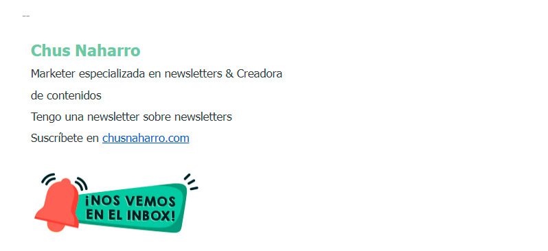 El email es probablemente uno de los medios de contacto que más usas a lo largo del día. ¿Por qué no aprovechar la firma para gritar a los cuatro vientos que tienes una newsletter?