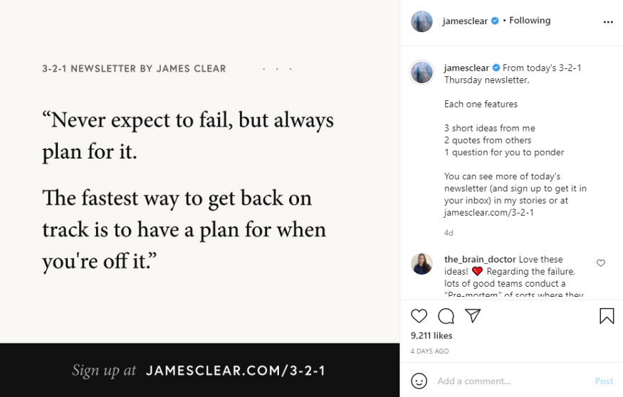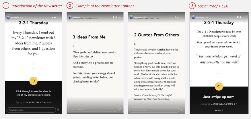 Te traigo el ejemplo de James Clear, autor de Hábitos Atómicos cuya newsletter reciben más de 1 millón de personas. Sí, un millón. Así es que este hombre le está sacando partidos a estos hacks para aumentar su lista.