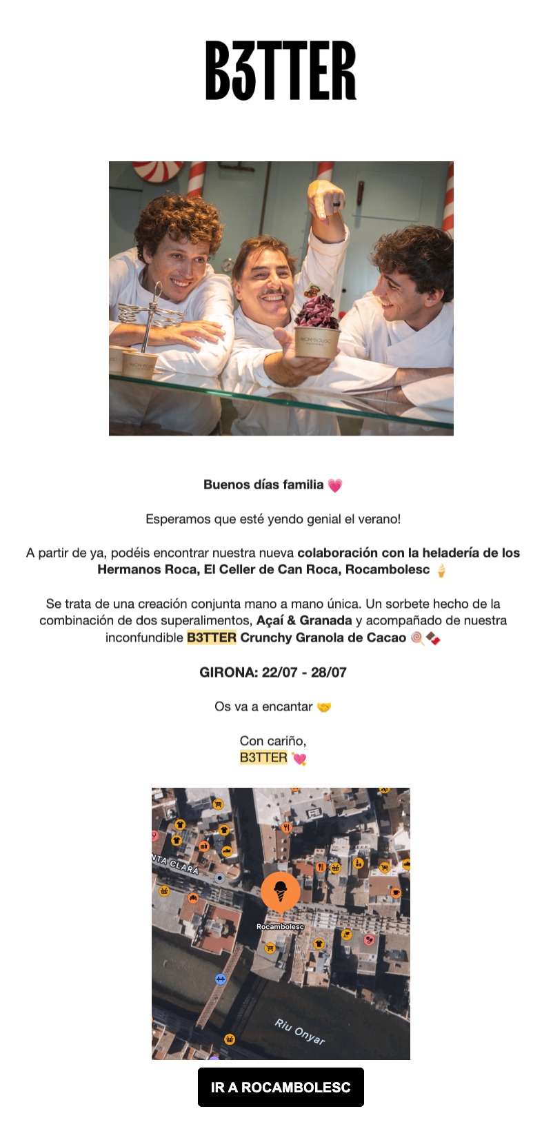 Fíjate cómo la marca de alimentación B3TTER colaboró con la heladería de los hermanos Roca durante una semana concreta.