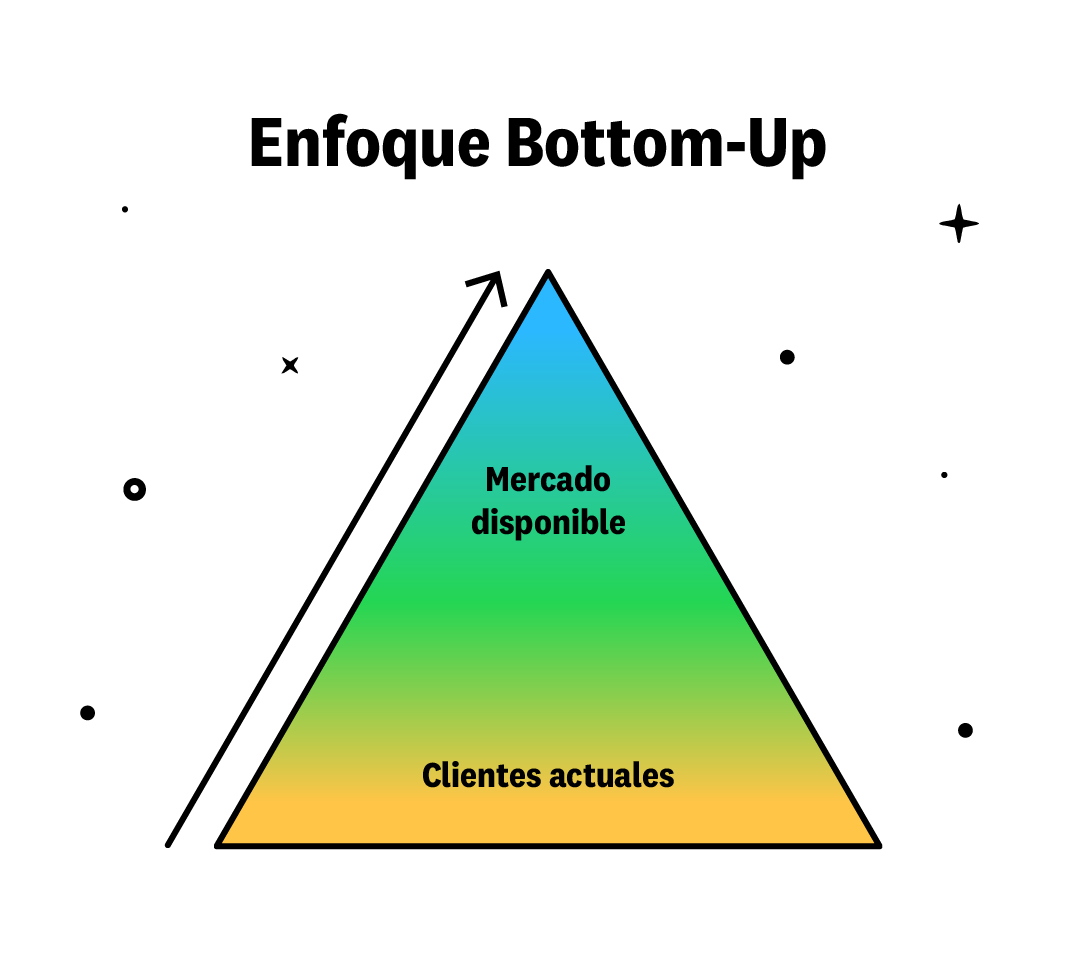 En lugar de partir del mercado global y recortarlo, se construye desde abajo: se identifica un segmento concreto de clientes bien definidos, se estima cuántos hay y se multiplica por el precio propio.