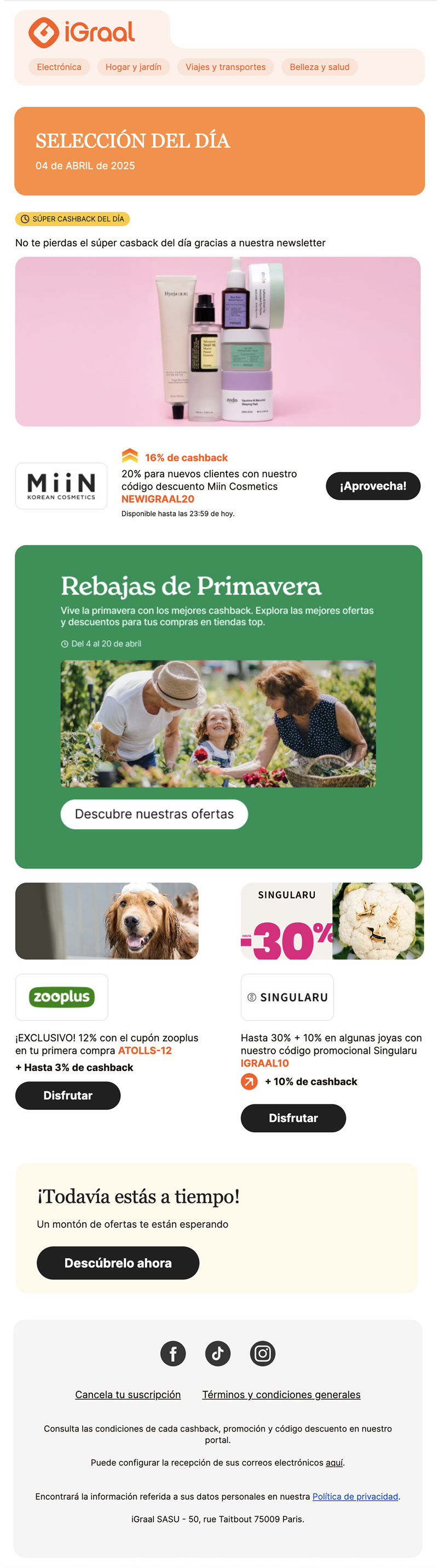 Esta newsletter de iGraal es un gran ejemplo de como usar los colores en el fondo para separar contenido y destacar partes de tu email.